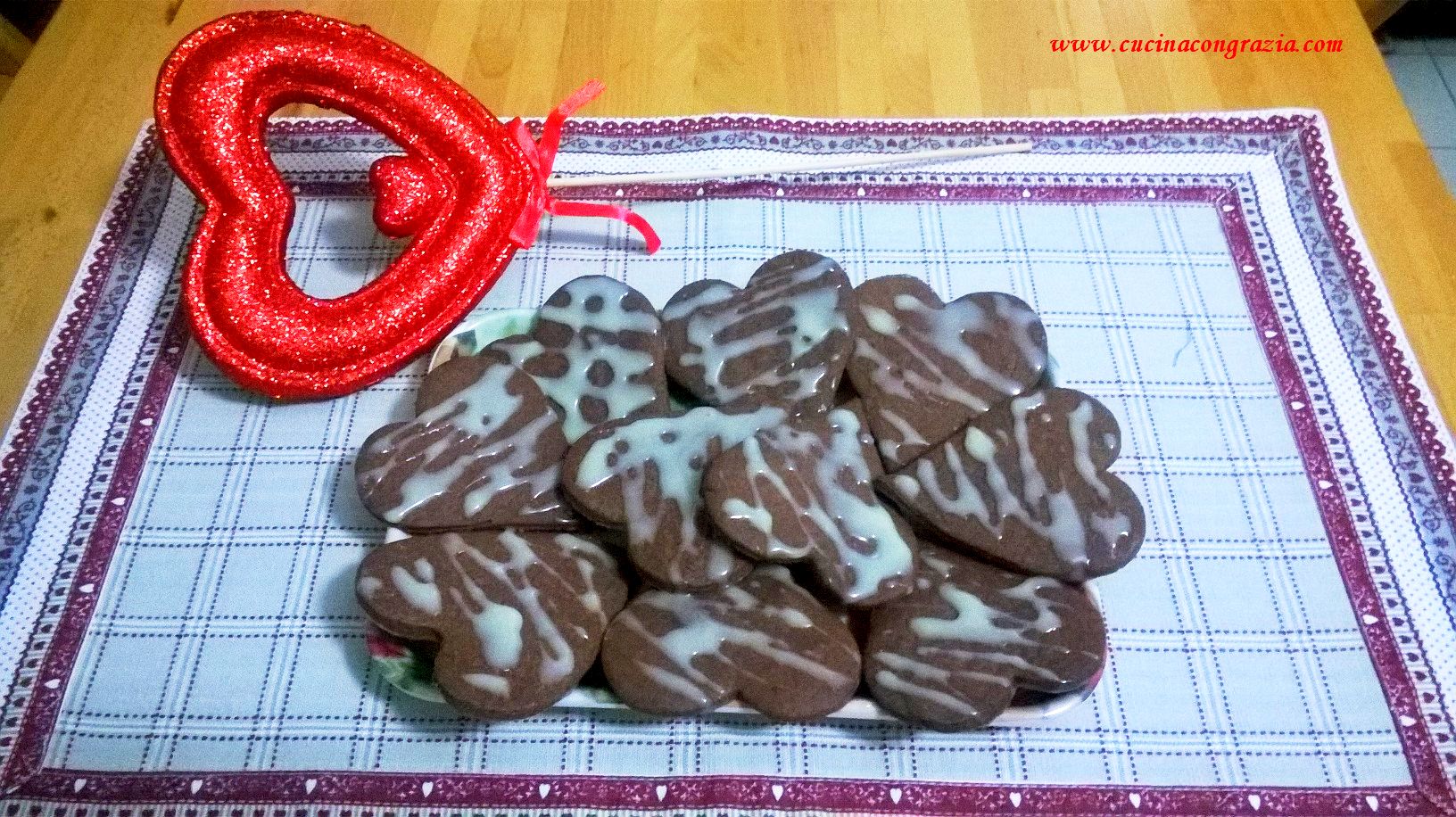 Read MoreI biscotti di quest’anno per San Valentino sono al cacao, una semplice pasta frolla decorata con cioccolato bianco. Si preparano